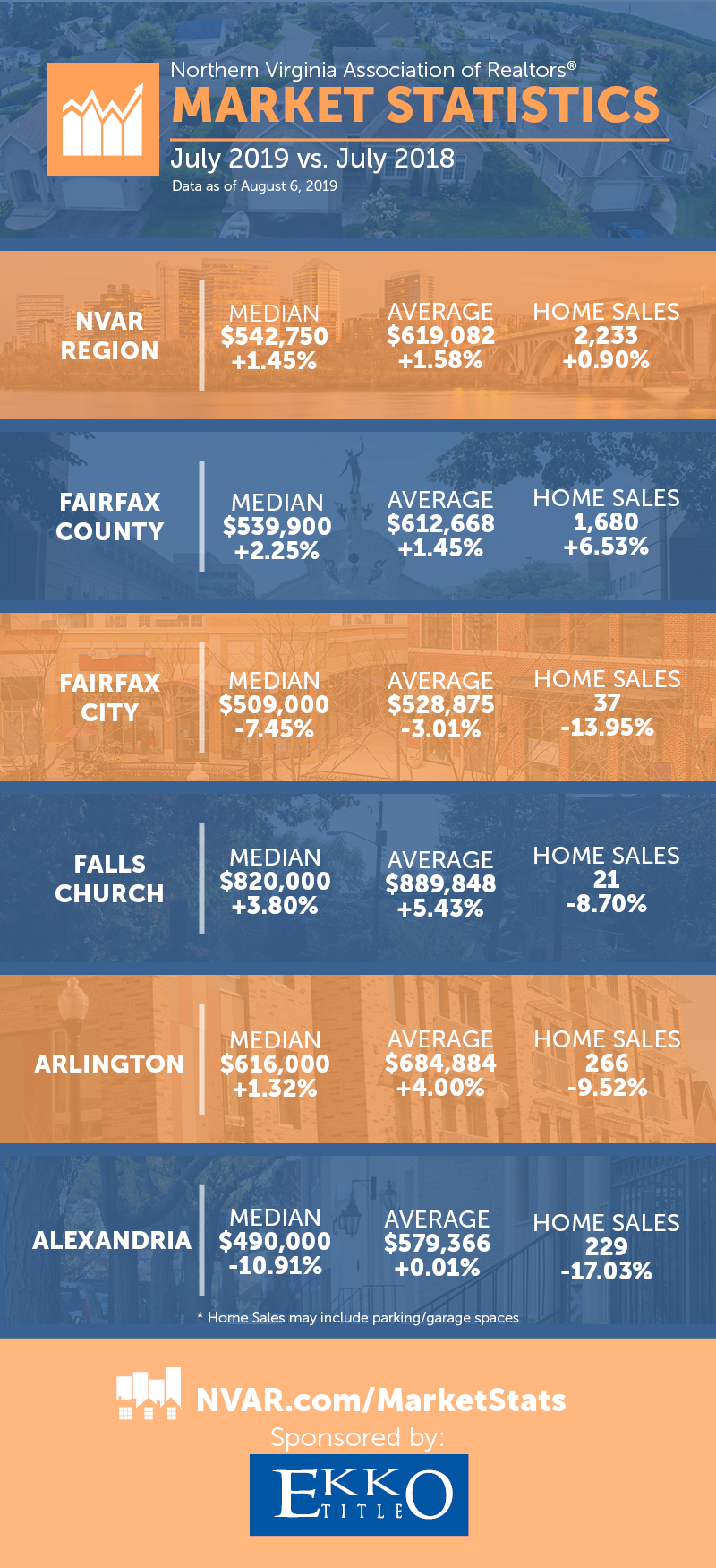 Fairfax - "Steady as she goes," says Christine Richardson, president of the Northern Virginia Association of Realtors® (NVAR), and an agent with Weichert, Realtors® in Great Falls, Va., describing the region's July housing activity. "Sales and prices in our NVAR region were relatively flat last month," says Richardson. Median and average prices were about 1 to 2 percent higher than in 2018, and the total number of sold units were around 1 percent above last July, with buyers paying 99 percent of asking prices, on average. "In the 'Amazon Area' covering Arlington County and…