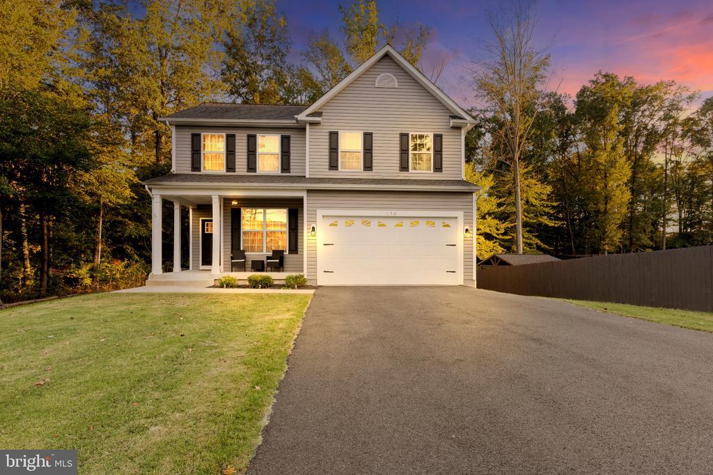This exquisite Colonial-style home, built in 2018, offers a harmonious blend of modern luxury and timeless elegance. Step inside to discover an inviting open floor plan that seamlessly connects the living spaces, perfect for both entertaining and everyday living. The heart of the home features a cozy gas fireplace, creating a warm ambiance for gatherings. The spacious dining area flows effortlessly into the gourmet kitchen, where upgraded countertops and stainless steel appliances-including a built-in microwave, gas range, and dishwasher-make culinary endeavors a delight. The main level is adorned with luxurious vinyl plank flooring and plush carpeting, offering comfort underfoot. This home has all the upgrades, crown molding, Granite countertops, elegant lighting and a home office. A thoughtfully designed laundry area is conveniently located on the upper floor, enhancing the home's functionality. Each of the four bedrooms are oversized, with the primary suite boasting a large primary full bathroom and walk-in closet that provides ample storage space. Step outside to your generous .71 acre where a beautifully crafted deck and patio invite you to enjoy outdoor dining, entertaining or simply unwind in nature. This partly wooded space offers endless possibilities - whether you envision a inground pool, gardening or private tranquil retreat. The property features a full unfinished basement with an outside entrance, perfect for a home gym, workshop, or additional living space. With an attached front-entry garage accommodating two vehicles and a driveway that can host up to six cars, convenience is at your fingertips. Experience the perfect balance of luxury and comfort in a setting that feels like a retreat, yet remains close to essential shopping, downtown Fredericksburg, commuter lots and rail stations. Embrace the opportunity to make this exceptional property your own, where every detail has been thoughtfully curated for a life of ease and elegance.
